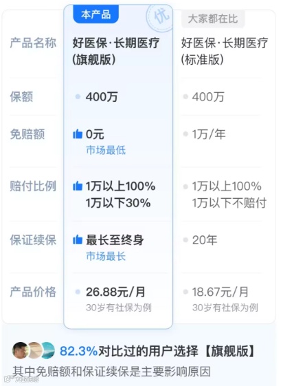 2)免赔额门槛:DRG下,有险企开始升级百万医疗险产品,免赔额调低甚至推出“0免赔额”版本,可结合保费提升以及自身经济实力综合判断选择,只不过免赔额低的保障作用会大一些;