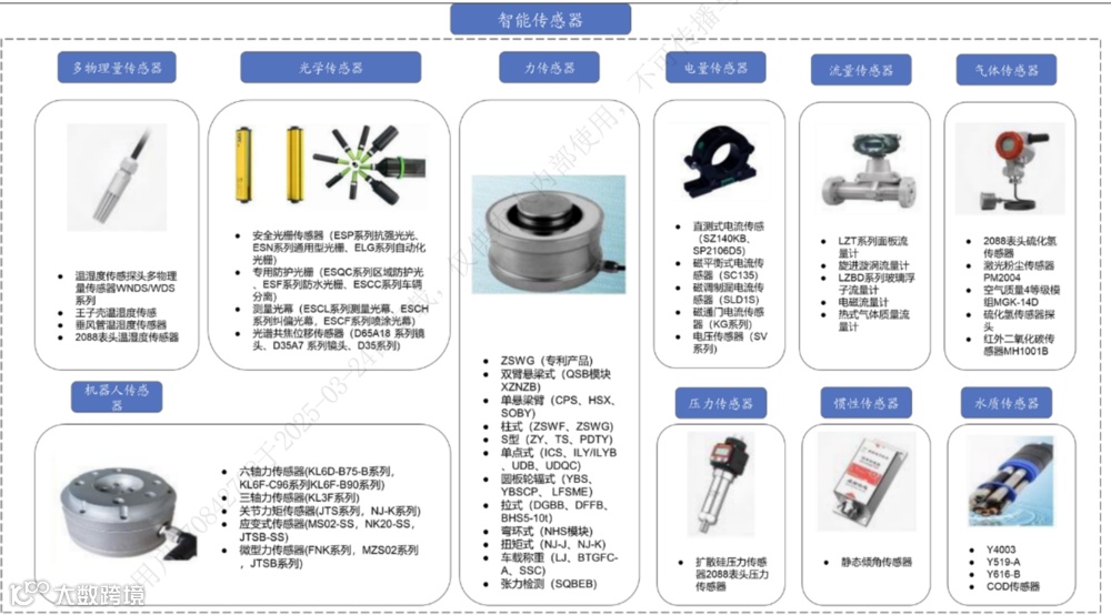 传感器是公司的起家业务,经过多年发展,目前公司已涉足称重、光电、水质、光纤测温、光幕、气体、位移、电量、温湿度压力、流量、3D 视觉、激光测距、振动传感器、机器人多维力传感器等近二十种传感器。