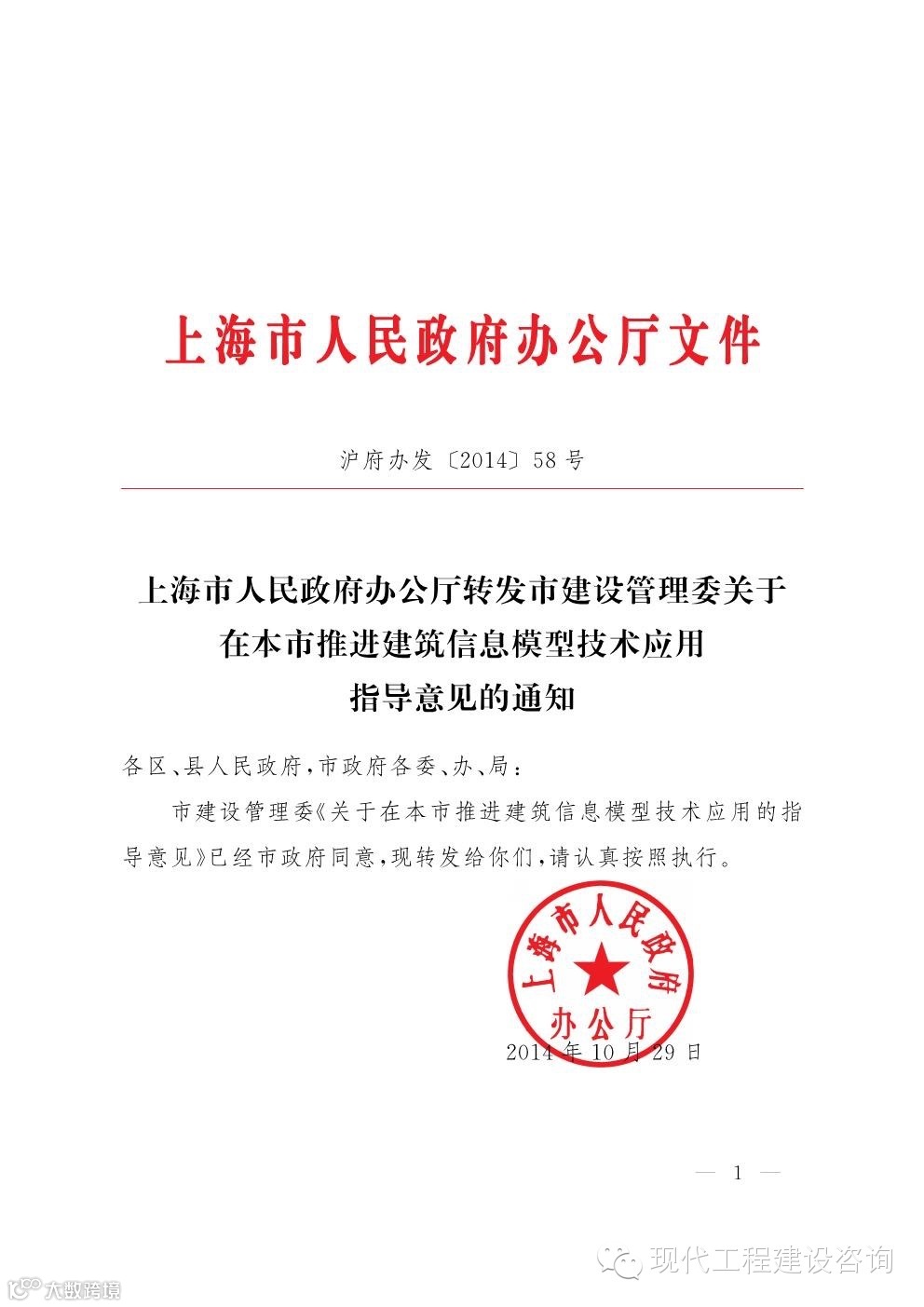 【✲✲政策导向✲✲】上海市人民政府办公厅转发是建设管理委关于在本市推进BIM技术应用指导意见