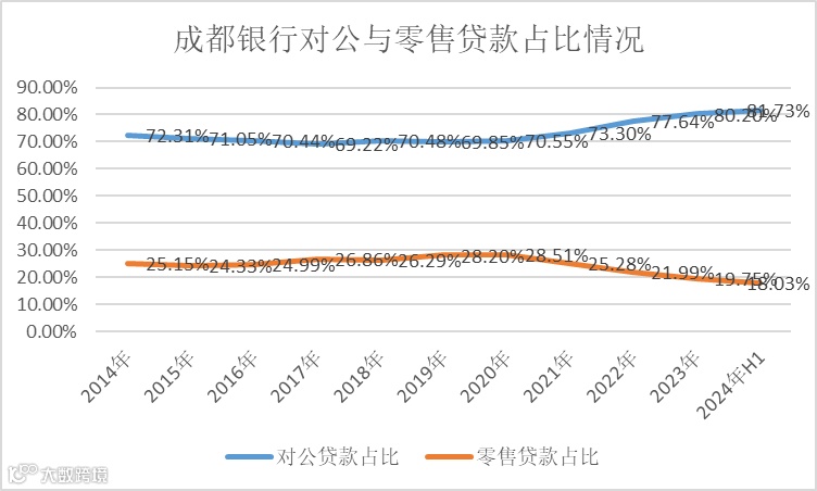 在危机中成都银行逐渐调整信贷结构,进一步增加对公贷款的比重,降到零售贷款的比重。