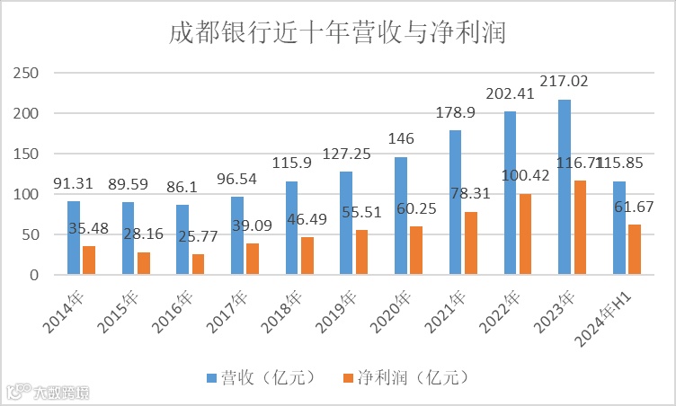 如果算近十年来的营收与净利润增长,成都银行也还不错,不过与宁波银行、杭州银行、江苏银行、南京银行、长沙银行等优质城商行相比并不起眼。