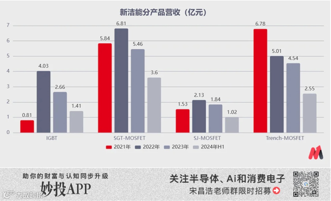 作为功率半导体的重要下游,光伏以及汽车领域持续不景气的影响,新洁能来自这两个领域的营收也在不断地降低。根据中报显示,2024年上半年公司来自光伏和汽车电子领域的营收已经从2023年的32%下降至27%,下滑明显。