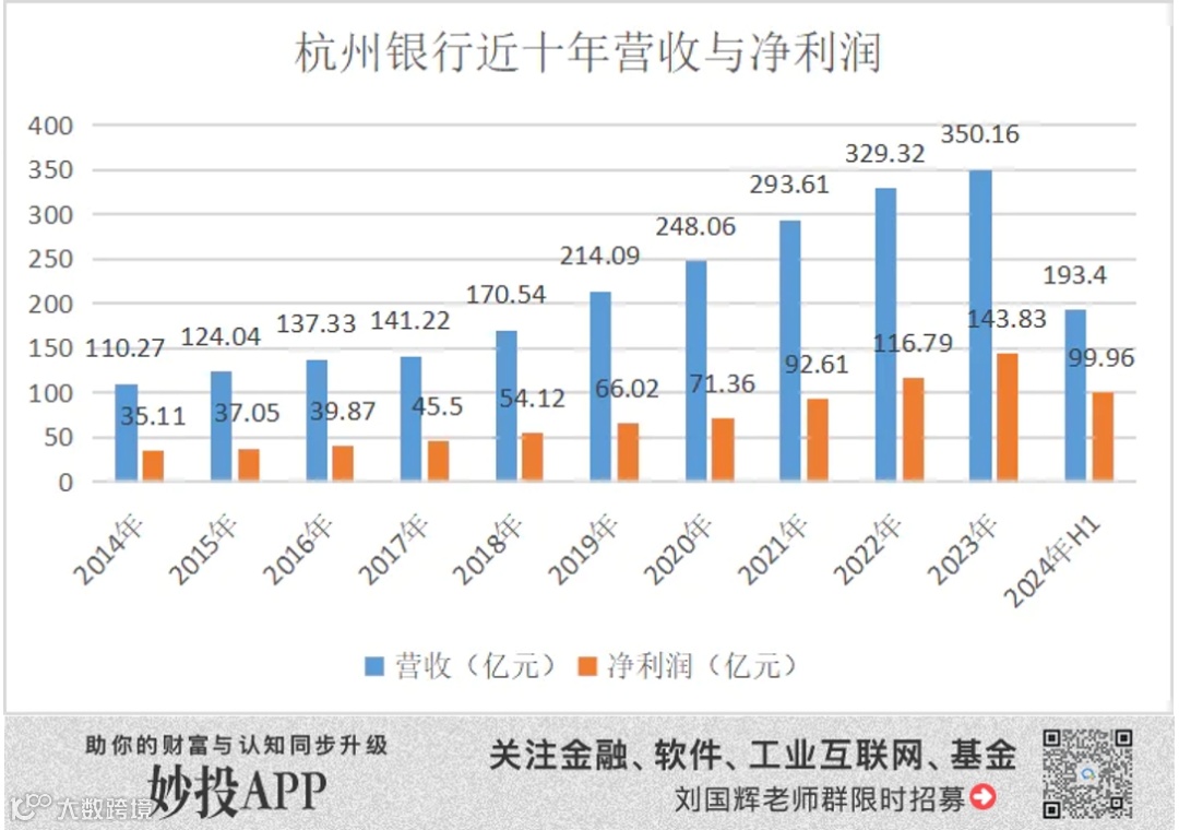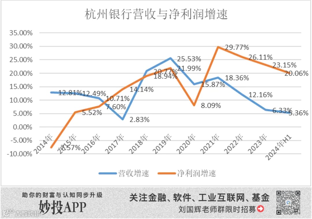 一方面,看上去业绩还不错,7月26日,杭州银行发布2024年半年度业绩快报,上半年营收193.40亿元,同比增长5.36%;净利润99.96亿元,同比增长20.06%。