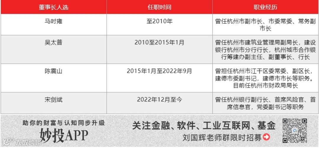 杭州银行历任董事长情况