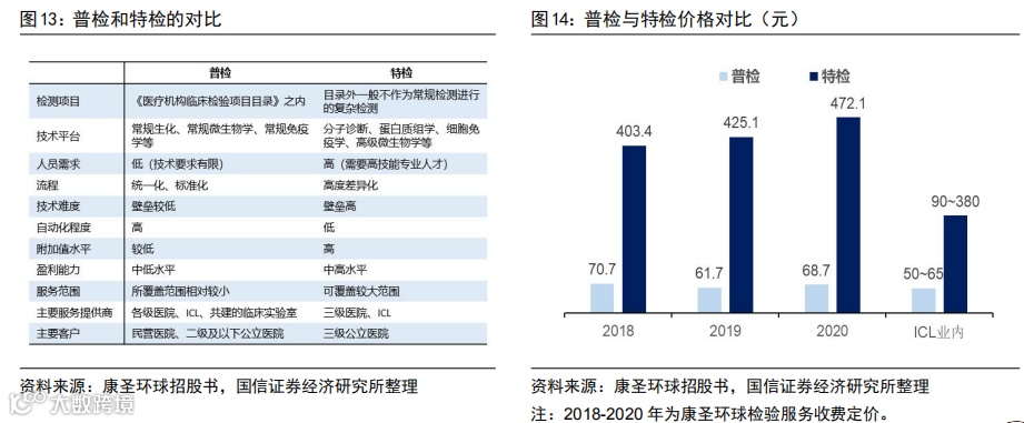 而特检项目是特定疾病下的非常规检测,如传染病及肿瘤遗传学分子检测、药物基因组学检测、细胞遗传学检测等,技术要求较高,需求相对较少,是医院倾向于外包的。