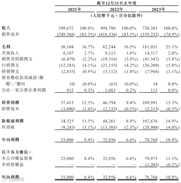 2021年、2022年、2023年公司实现营收分别为2.99亿元、4.98亿元、7.20亿元;2021年、2022年、2023年公司实现净利润分别为0.25亿元、0.33亿元、0.78亿元。