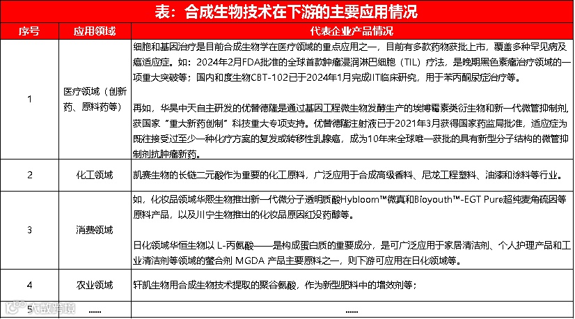 从下游应用看,合成生物技术不仅仅是概念,目前已涵盖医药、化工、能源、食品及农业等众多领域,并有商业化产品落地,则未来更多是产品数量以及不同类型产品的拓展。