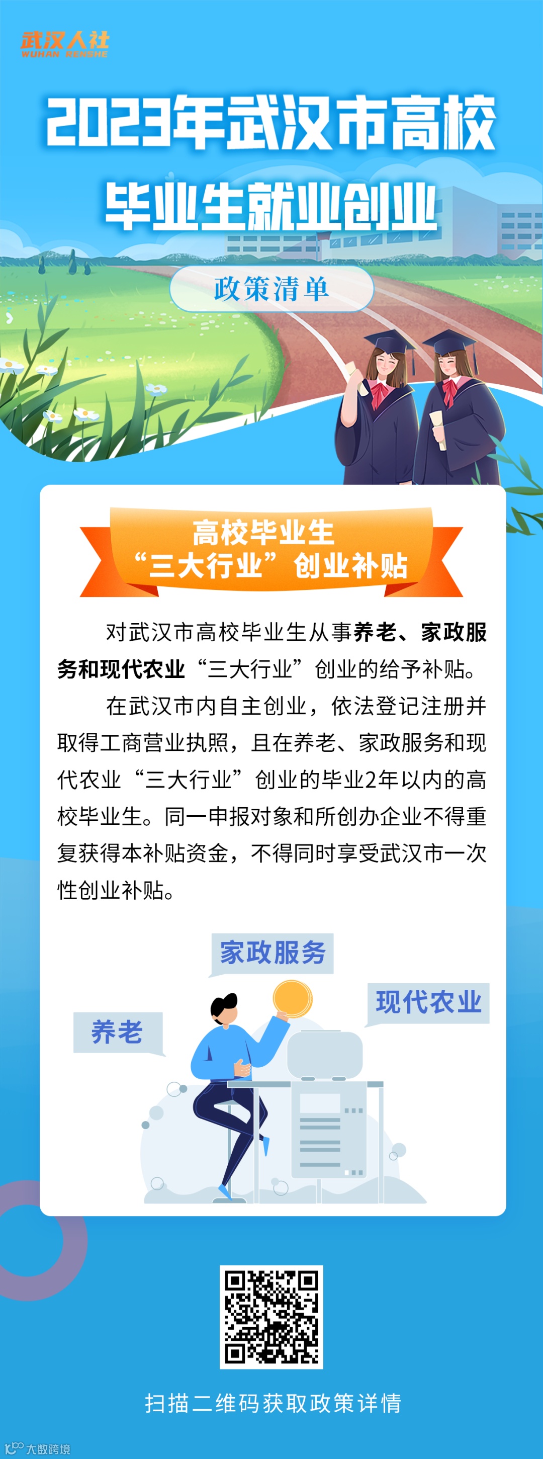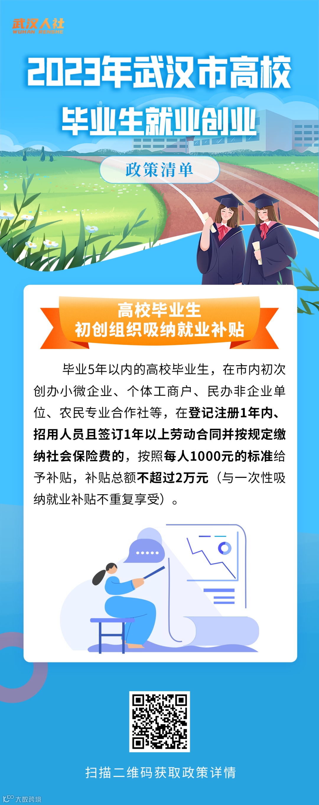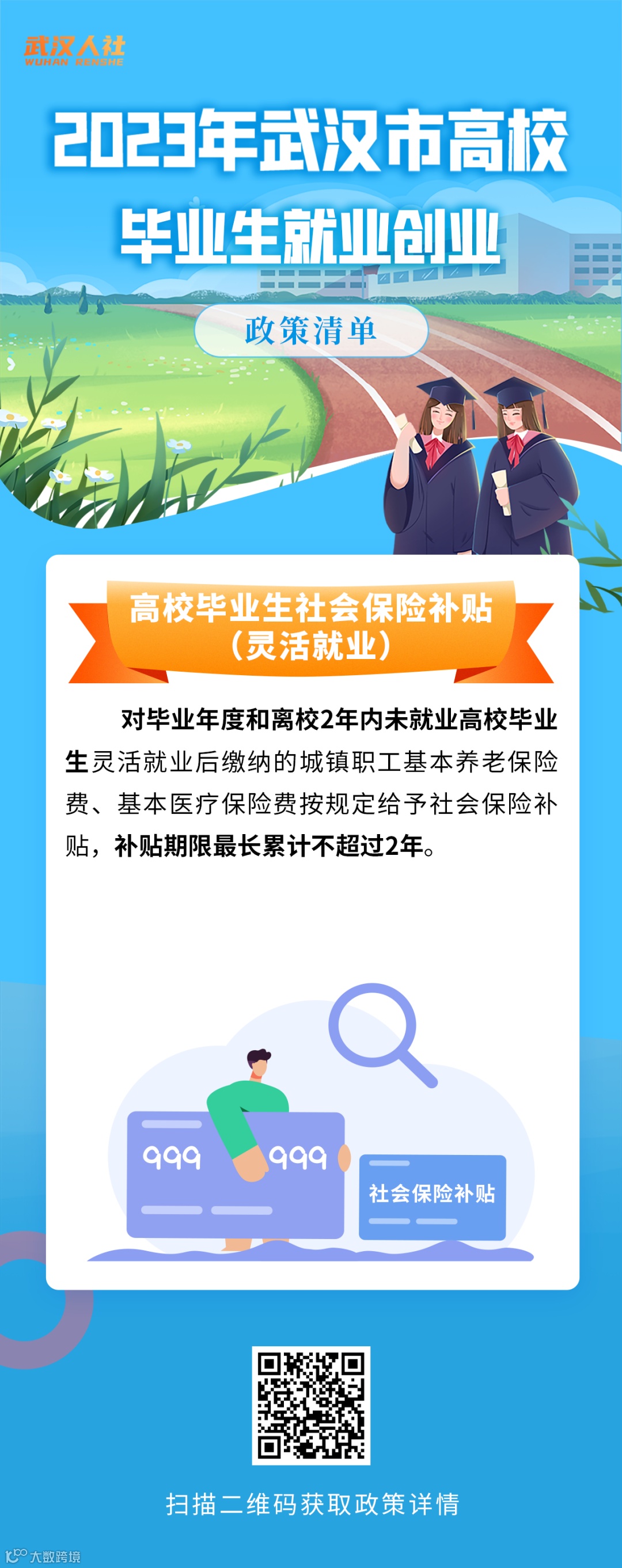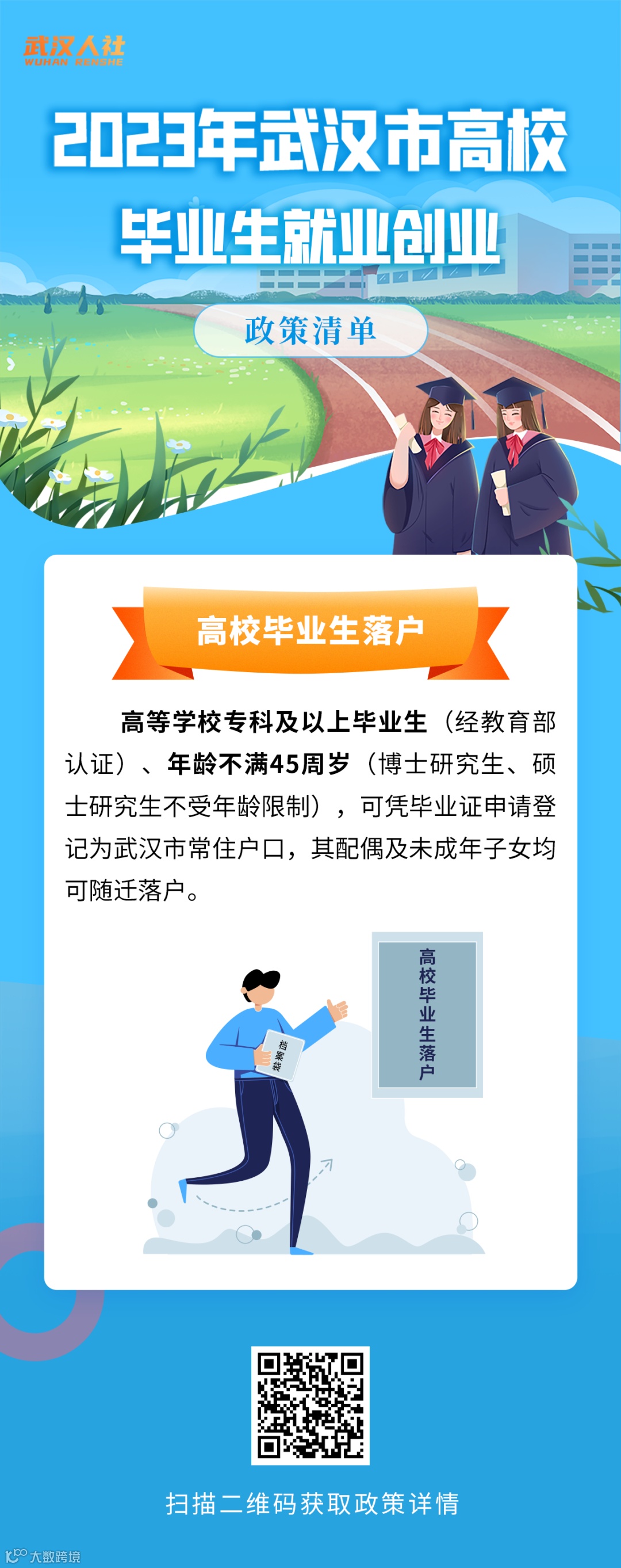高校毕业生等青年就业关系民生福祉、经济发展和国家未来。为深入贯彻党中央、国务院决策部署和省委省政府、市委市政府工作要求,按照人社部、省人社厅有关通知精神,武汉人社梳理优化了2023年武汉市高校毕业生就业创业政策清单,快来看看您可以享受哪一类政策吧!