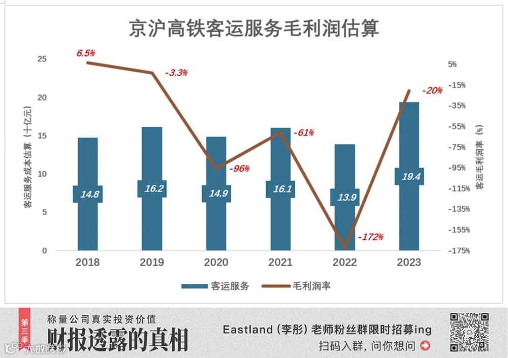 粗略估算难免高估客运业务成本,但“客运业务不赚钱”这个结论大致是正确的。或许,这正是京沪高铁不单独披露客运、路网业务成本的原因。#京东也不披露自营业务的成本#