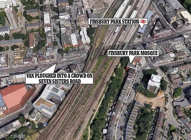 人们在芬斯伯里公园清真寺做完礼拜离开后,