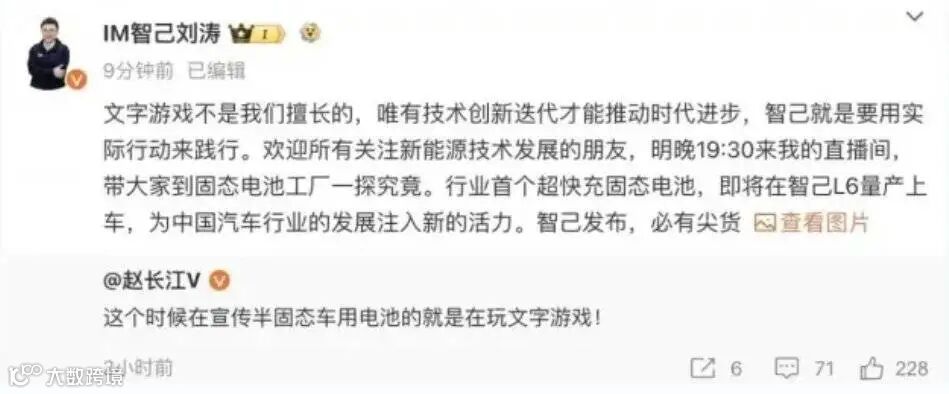 腾势销售事业部总经理赵长江发布微博表示,此时“宣传半固态车用电池的就是在玩文字游戏”,并引发了业内激烈争论。
