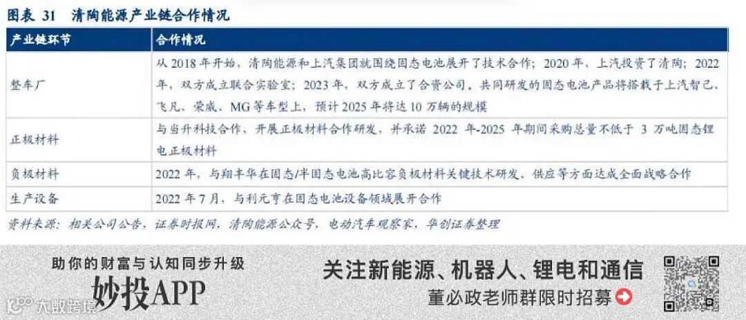 妙投认为,在半固态电池的风口下,当下清陶能源及其供应商受益确定性最高,也是资本市场关注的重点。