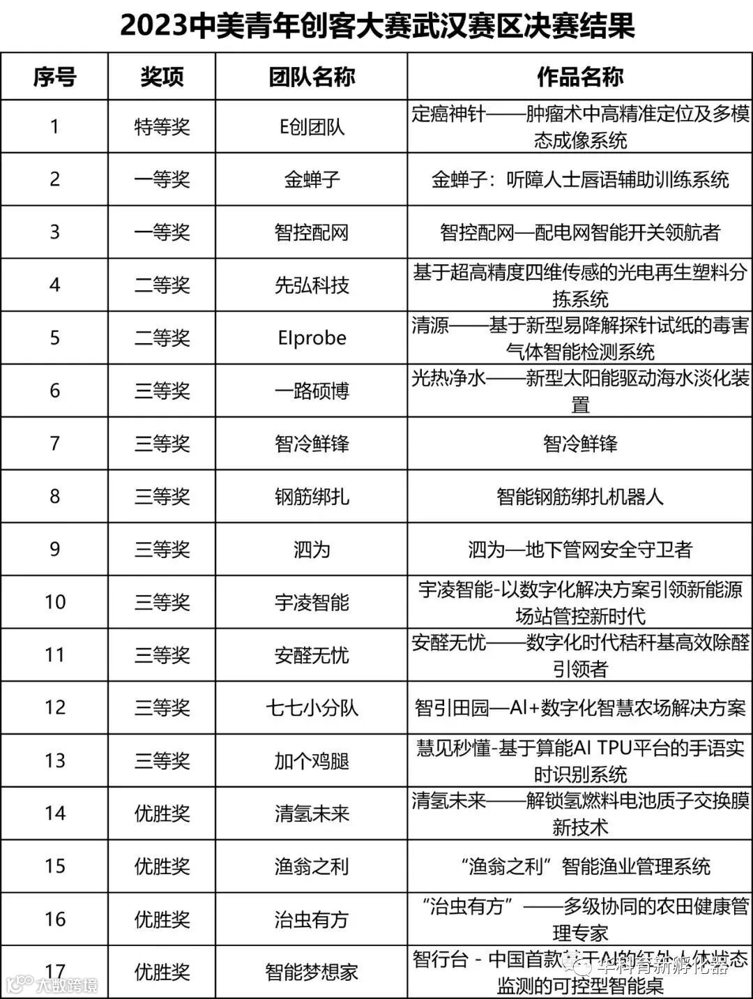 答辩现场,22支团队通过实物展示、项目ppt等多种方式进行产品和技术分享,专家评委则从项目的创新创意优势、作品完整性、技术合理性、应用前景方面综合评选,最终产生特等奖1名、一等奖2名、二等奖2名、三等奖8名、优胜奖9名(详见获奖名单),其中,前5名的团队(定癌神针——肿瘤术中高精准定位及多模态成像系统、金蝉子:听障人士唇语辅助训练系统、基于超高精度四维传感的光电再生塑料分拣系统、智控配网—配电网智能开关领航者和清源——基于新型易降解探针试纸的毒害气体智能检测系统)和2支职院团队将代表武汉赛区参加2023中美青年创客大赛全国总决赛。