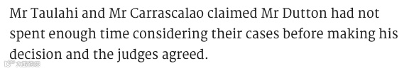 虽然Dutton一直强调,是因为两名原告曾经参与过黑帮,才会取消他们的签证!