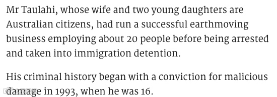 据悉,Taulahi现在居住在澳大利亚,他的妻子和两个小女儿都是澳大利亚公民。