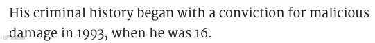 Taulahi,从1993年就开始了犯罪,那时他才16岁!包括蓄意破坏,拘捕,入室抢劫,以及偷窃!
