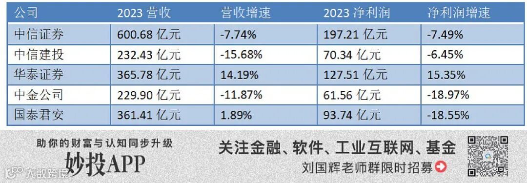 2023年头部券商业绩表现