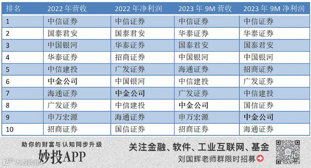 从券商收入利润排名来看,靠前的并非是“三中一华”,中金也很少进入前五。