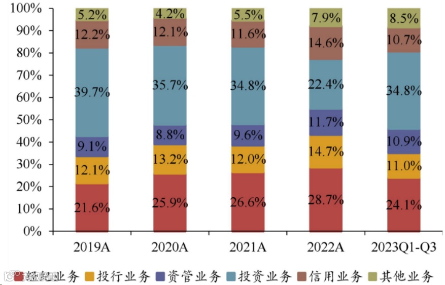 头部券商业务构成(截止2023年前三季度)