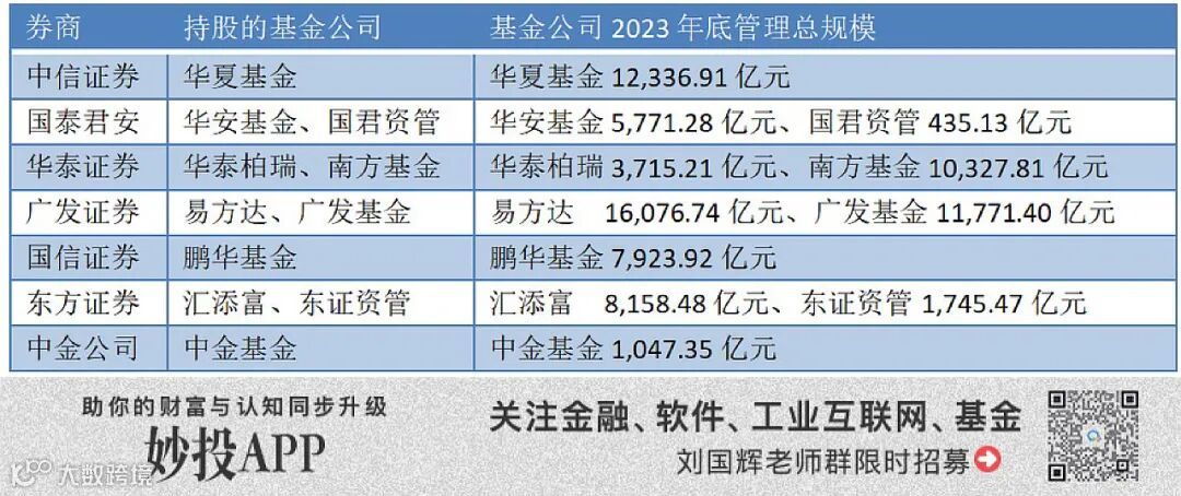 头部券商持有基金公司股权情况