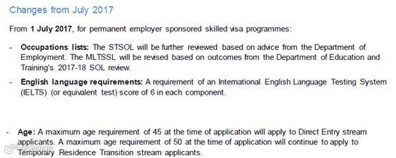 年龄已超过45周岁或在2017年7月1日之前会超过45周岁的申请人,如果有澳洲雇主担保,最好尽快在7月1日前递交186直接入境组的签证申请。
