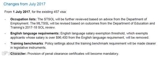 2017年4月18日:澳洲政府宣布废除457临时工作签证,并在移民局官网公布了两份情况说明,其中就包括了对于2017年7月1日以及2018年3月1日所涉及的改革内容。