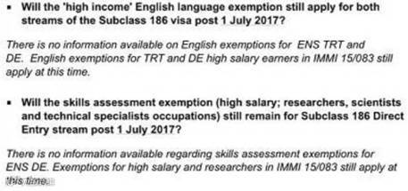 2017年5月17日 澳洲移民律师协会内部公开邮件表明,目前186高薪仍然可以豁免英文,技术评估等要求,但是对于2017年7月1日以后是否会有政策变化,目前没有公布任何消息。