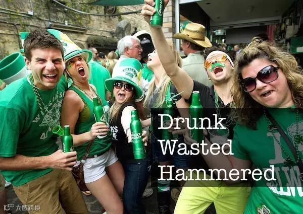 St. Patrick's Day is a day of drinking: 喝酒庆祝圣派特里克日