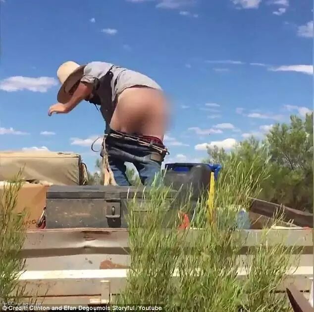 脱掉裤子→露出大屁股→坐在被太阳晒了一天金属工具箱上→坚持两秒→点名三个人继续完成挑战