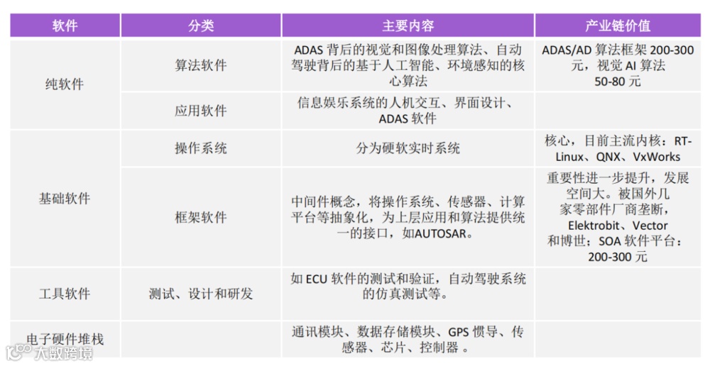 我们所说的软件定义汽车概念,不管是做一级的还是二级的的朋友,可能都比较熟悉了,包括各种算法、应用软件、操作系统以及各种框架和工具,这些都是一辆车的价值。