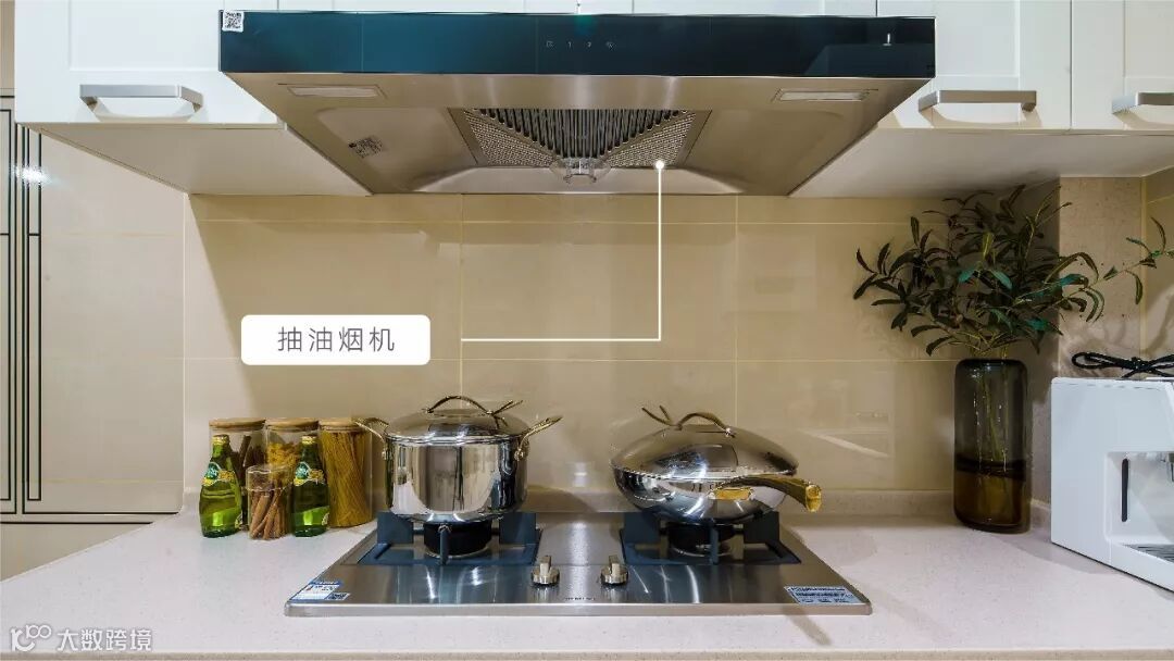 配备品牌抽油烟机,自动识别烹饪过程中释放出的有害气体和物质,进行清理和净化,让厨房历久弥新。