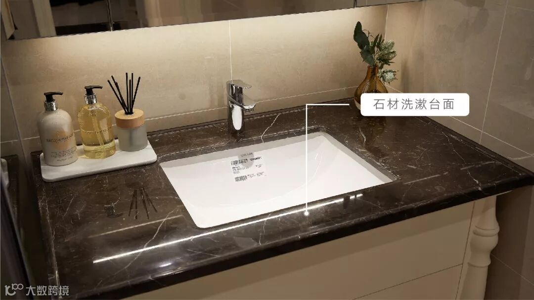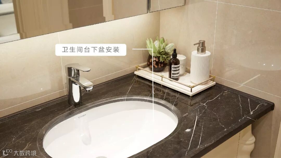 卫生间洗漱台底部悬空做法防潮性好,便于物品收纳,更好清洁。