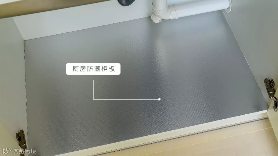 水槽下方柜体采用防潮板材,避免长期使用后水槽潮湿环境导致的柜体底板可能会发生的发霉变形。