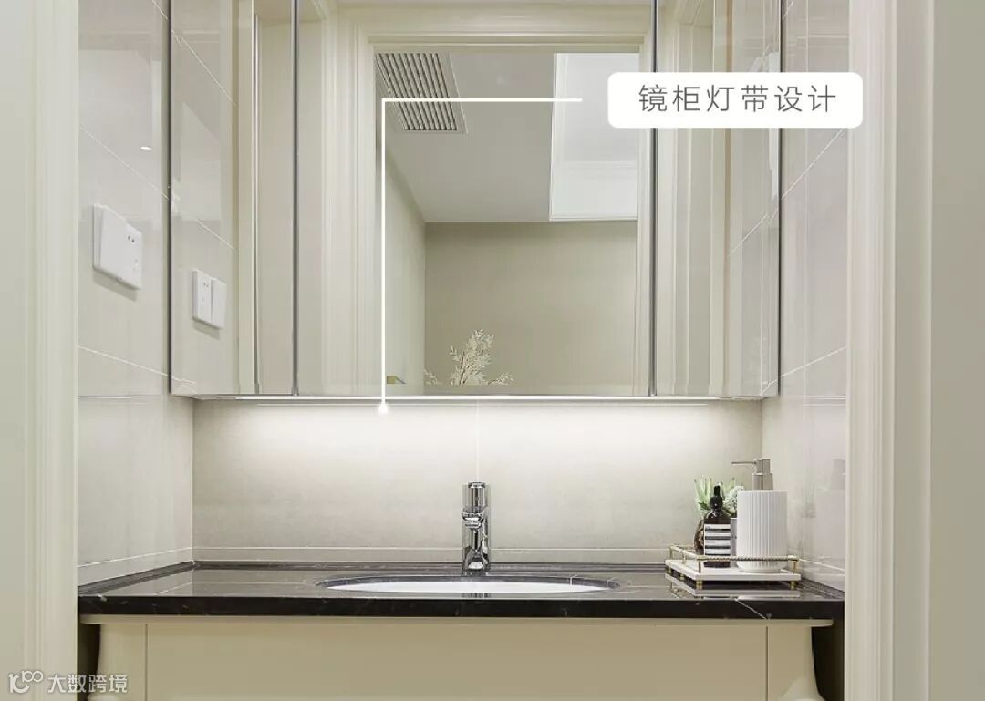 开关式镜柜灯带设计,照亮业主每一个角度的美丽。