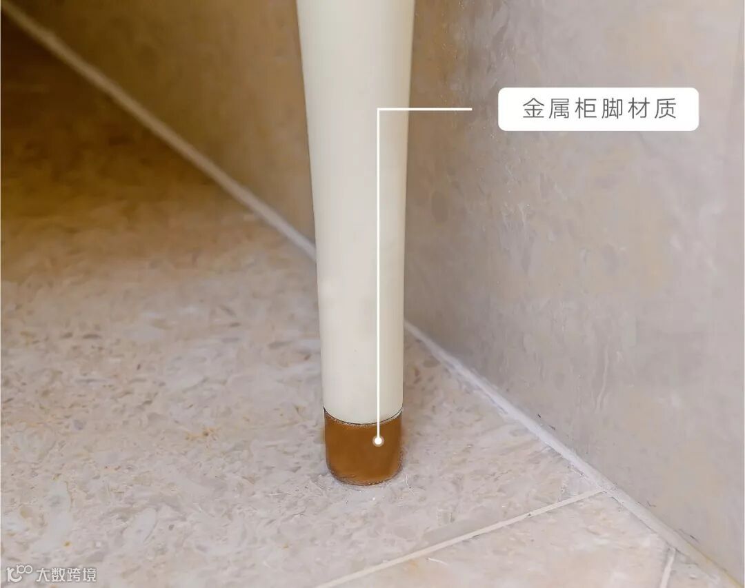 盥洗间柜脚采用金属材质设计,有效抗湿耐蚀。