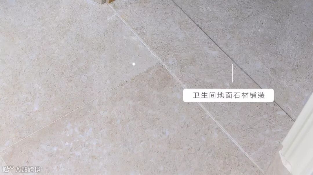 淋浴区地面挡水条采用高档石材打造,抗湿耐蚀,止水外溢,并在拼接处进行倒边处理,避免尖锐直角碰擦误伤。