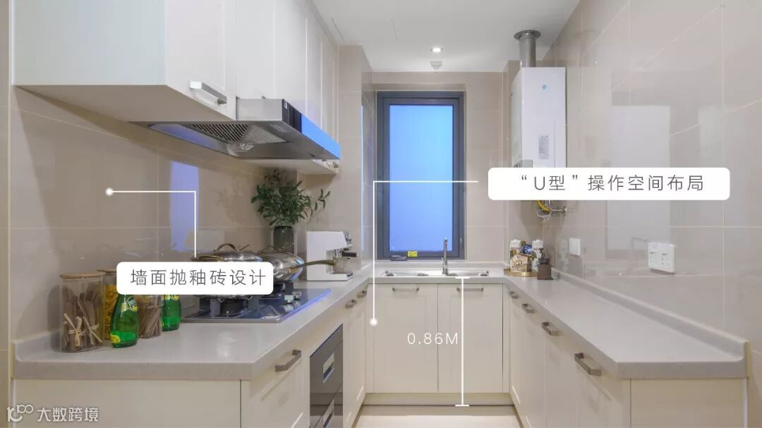大开间的“U型”操作台厨房空间布局,动线流畅不拥挤。