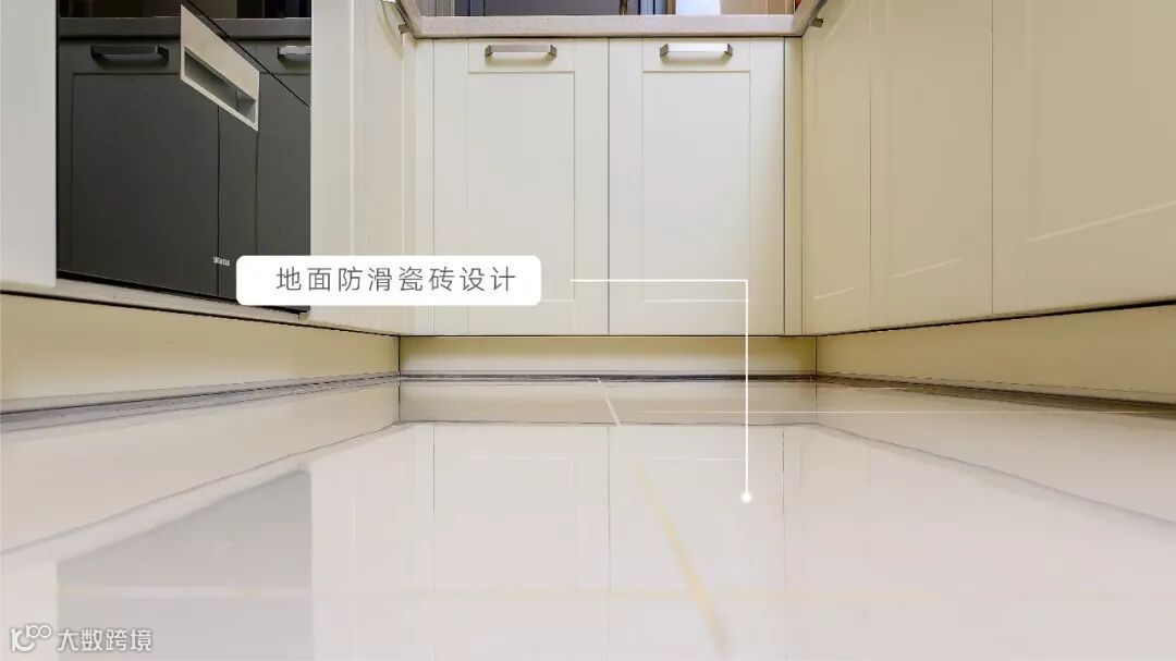 地面采用防滑瓷砖设计,不易沾染油烟,同时也更加方便清洁和打理。