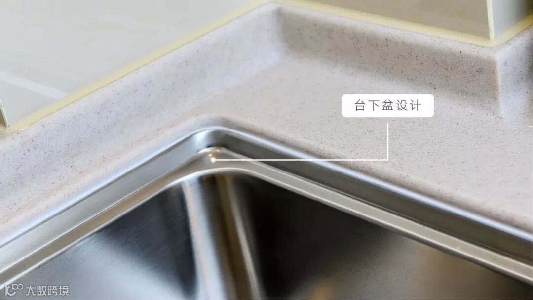 清洗水槽台下盆安装设计,对人造石工艺要求更严苛的同时,将易用、易洁性进一步提高,有效防止水滴喷溅至台面,圆弧边角设计不给卫生留死角。