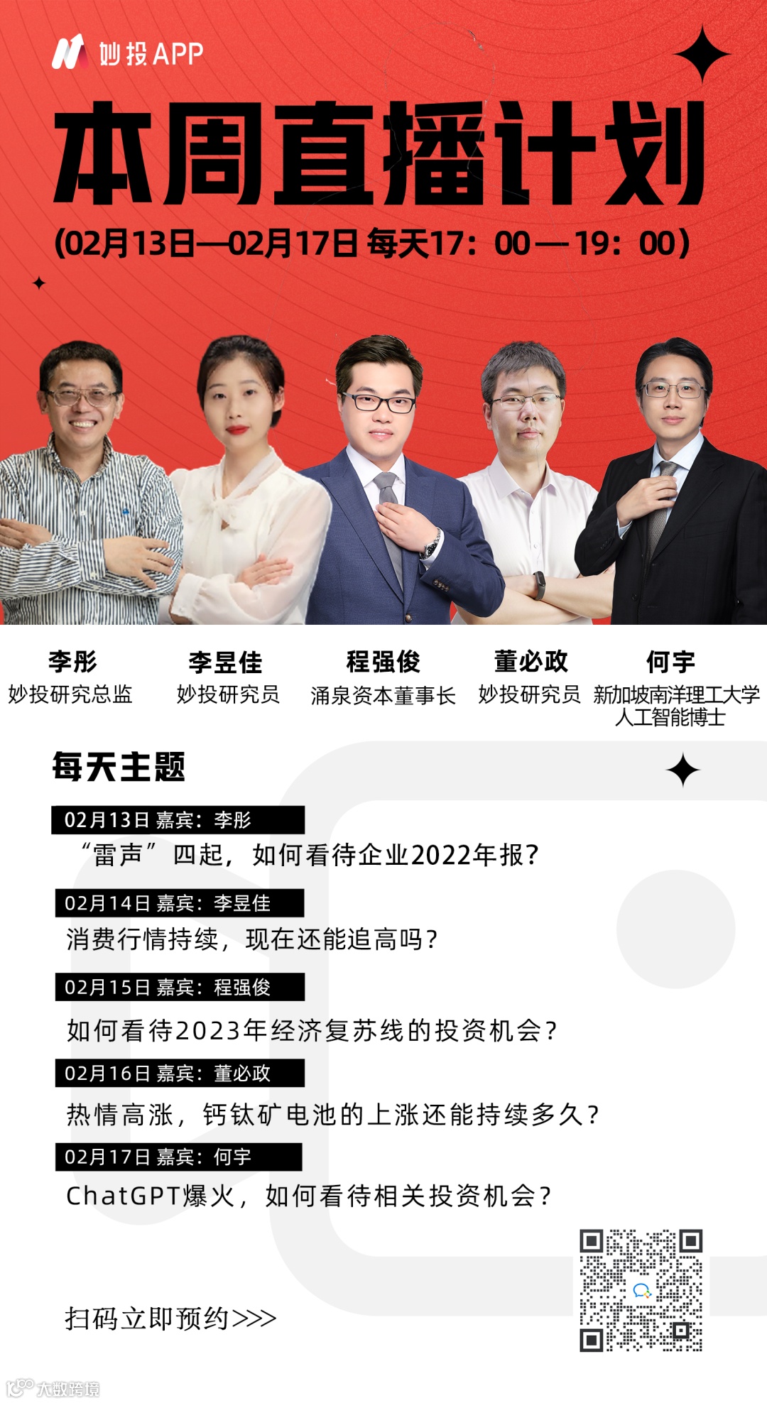 下周市场关注重点在哪里?该关注哪些宏观、行业机会?我们一起来看看下周《妙投五点钟》的直播节目单(如遇变化,请以播出当天宣传为准):