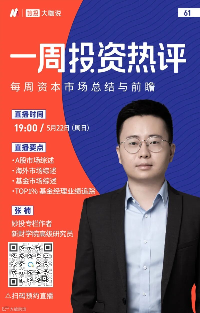 好啦今天就聊到这里了,周末愉快,希望下周的股票能够继续涨涨涨。别忘记周五张楠老师的【一周投资热评】直播,周日晚上7点,在妙投APP直播间,不见不散。有问题的用户可以在直播间评论区直接提问,张楠老师在线实时回答。