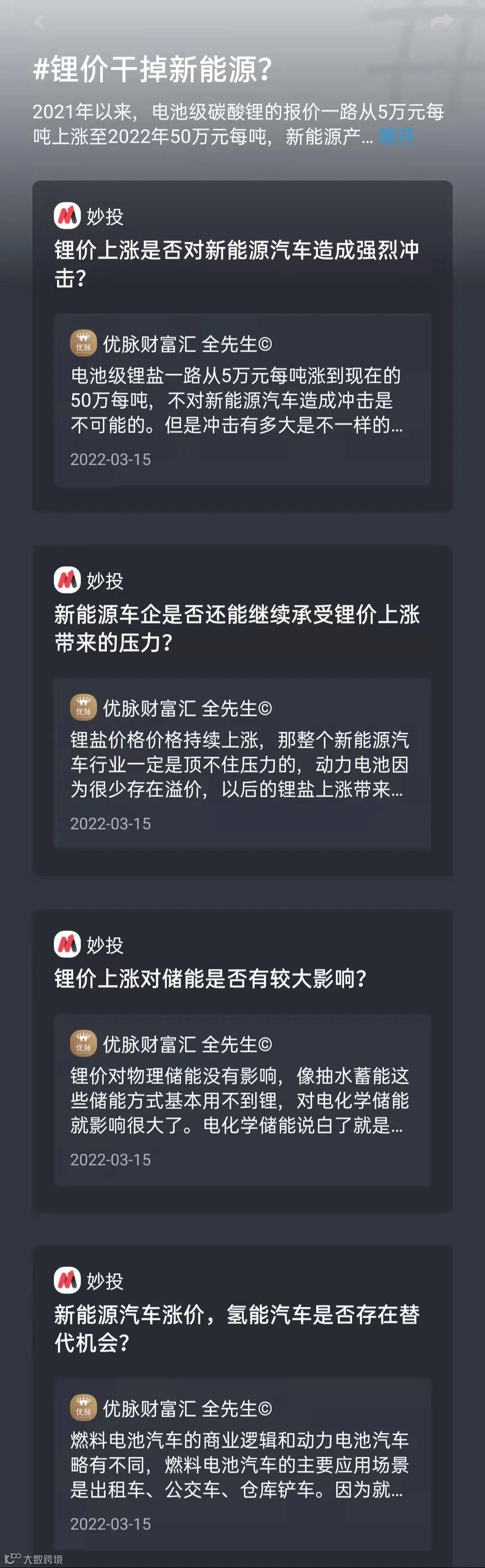 对新能源汽车行业整体来说,只要锂价还在上涨,那就是车企和电池厂还能消化,等他们不再买锂了,锂盐价格在涨也是有价无市,价格是不成立的。