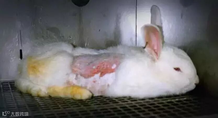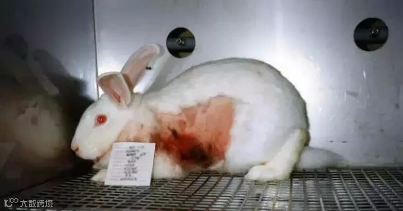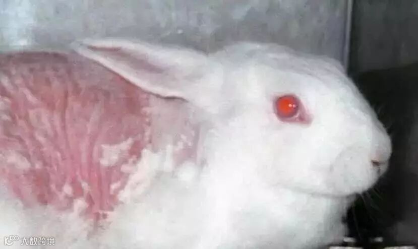 或是把兔子的毛剃掉后所呈现与人类相似的皮肤涂抹化学物品,之后用水冲洗