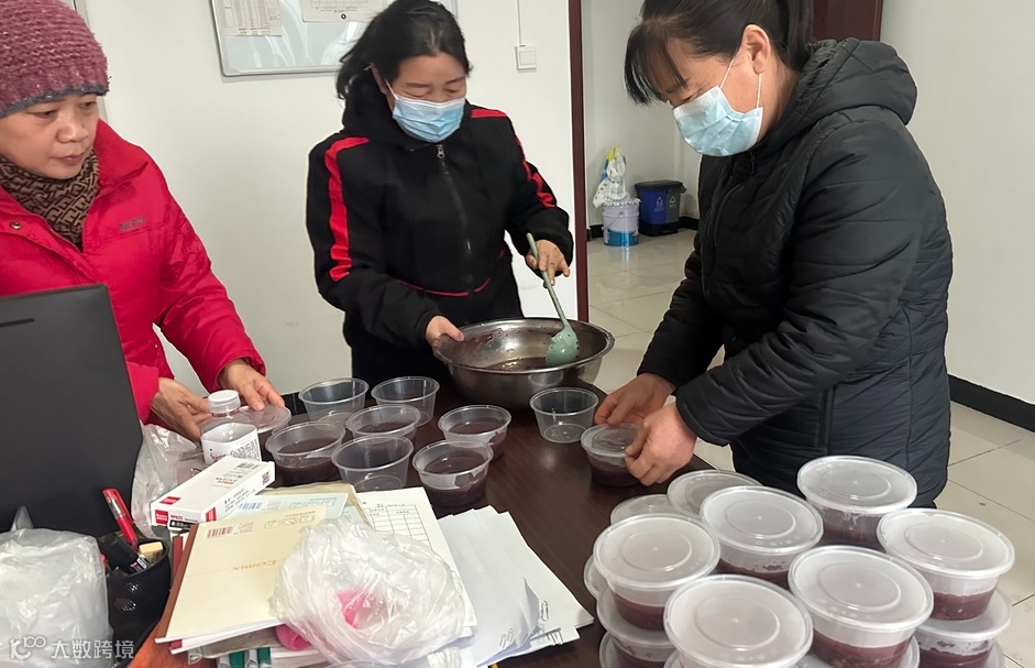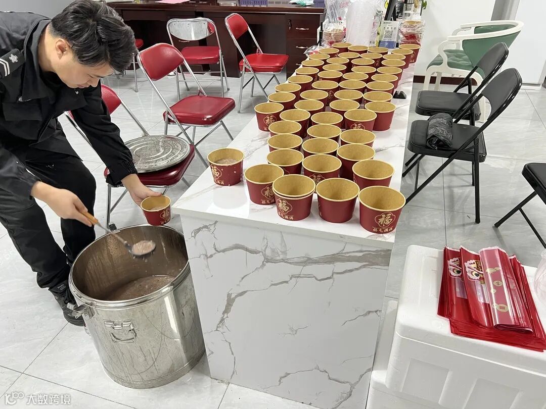 为过往的业主们端出了一碗碗热气腾腾的腊八粥。