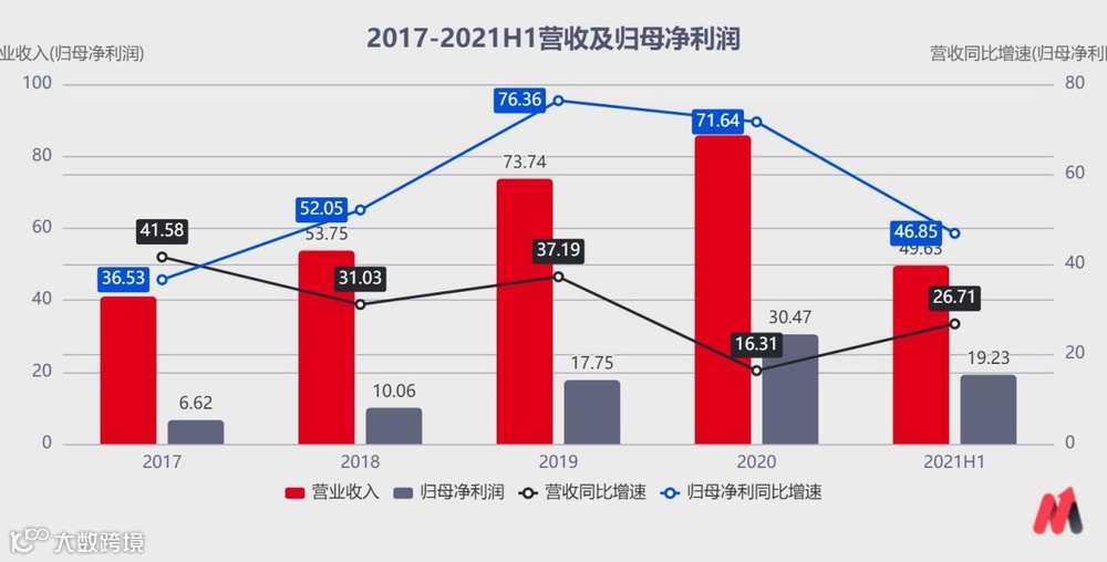 2021年上半年,公司实现营业总收入49.63亿元,同比增长26.71%;归母净利润19.23亿元,同比增长46.85%。从收入和利润增速来看,公司持续保持快速增长。