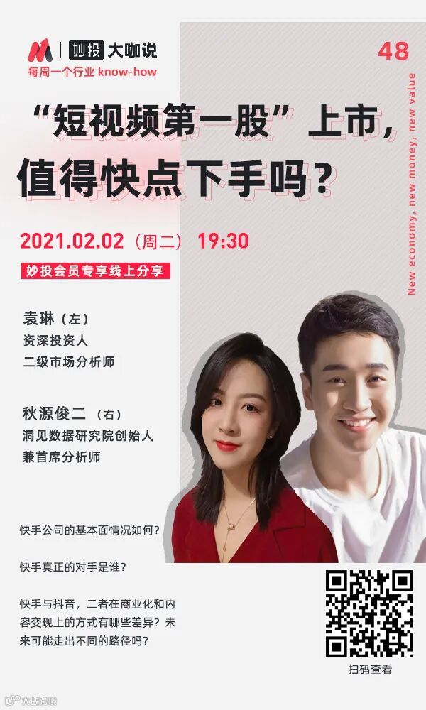 港交所即将迎来一个大客户——快手科技(1024)称将全球发售3.65亿股,抢跑抖音,成为“短视频第一股”。快手的基本面情况如何?快手真正的对手会是谁?快手与抖音,二者在商业化和内容变现上的方式有哪些差异?未来会走出不同的路径吗?