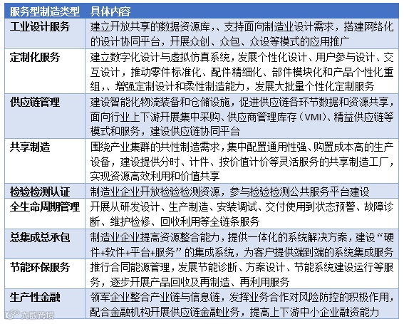 上文已经提到几种服务化的玩法。实际上制造业服务化有很多种形式。《关于进一步促进服务型制造发展的指导意见》中,提出了九种典型的服务型制造模式。
