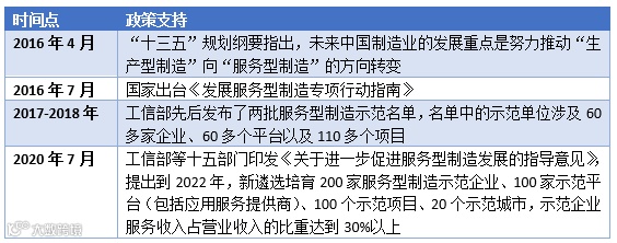 国家支持服务型制造的政策时间线