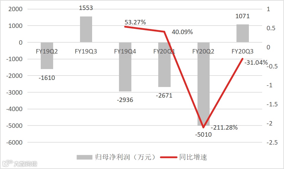 FY20Q3,如涵实现归母净利润1071万元,在连续经历了三个季度亏损之后,迎来了盈利。这主要归功于“双11”带来的收入大幅提升,这属于电商业务的周期性。所以,此次盈利并非是公司的业绩拐点,在未来三个季度依然很难保持盈利。