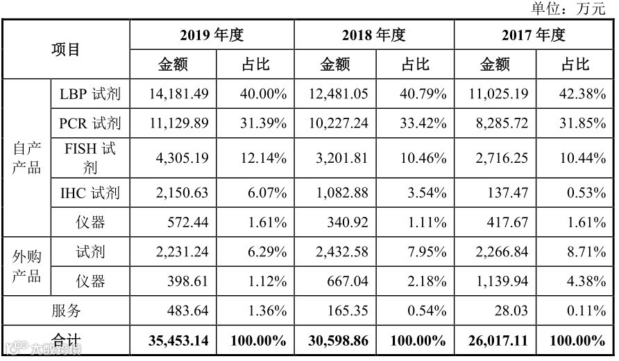 上述两大产品线产品作为宫颈癌筛查和诊断的应用产品,占营业收入的比例为70%以上,是公司收入的主要来源。